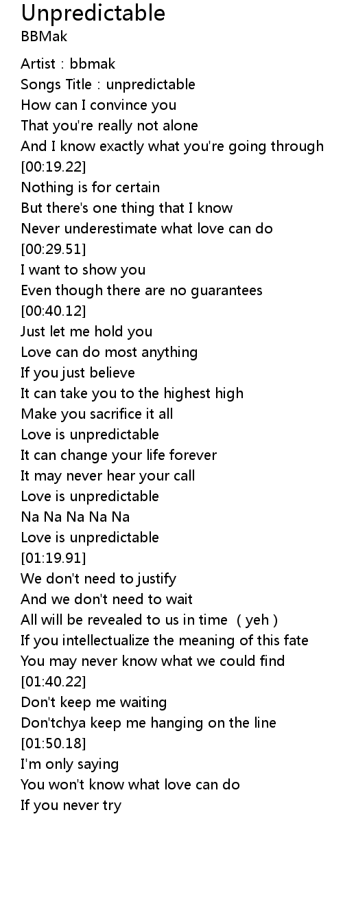 | [00:05.24] | Songs Title: unpredictable |