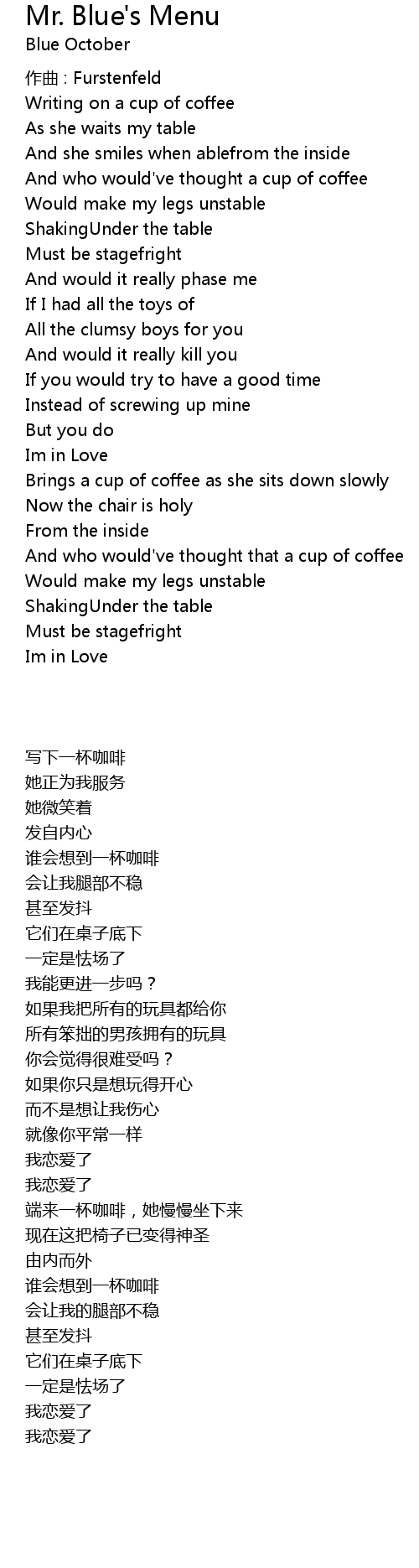 | 歌曲 | Mr. Blue's Menu |