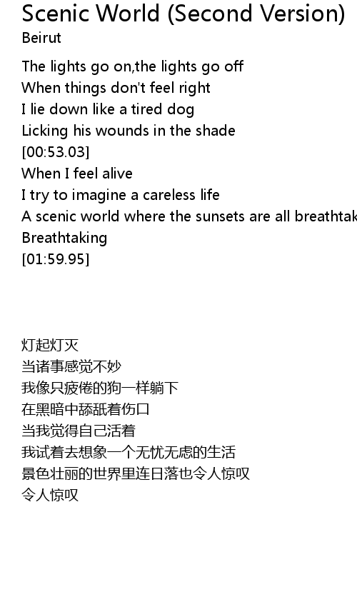 | [01:37.34] | 景色壮丽的世界里连日落也令人惊叹 |