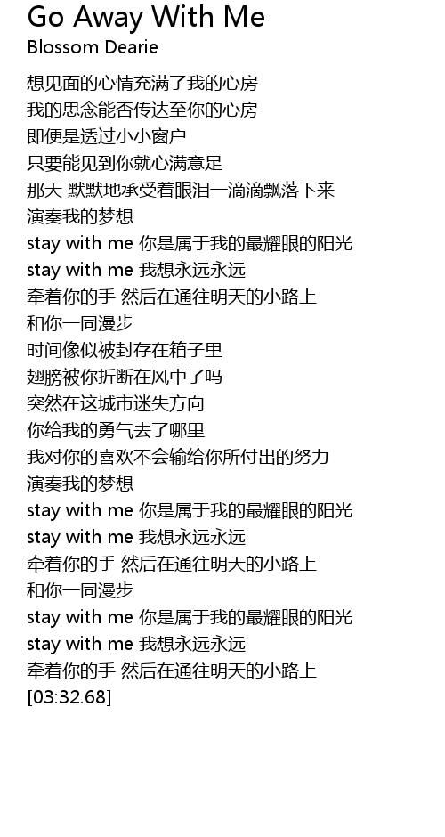 | [03:15.87] | stay with me wǒ xiǎng yǒng yuǎn yǒng yuǎn |