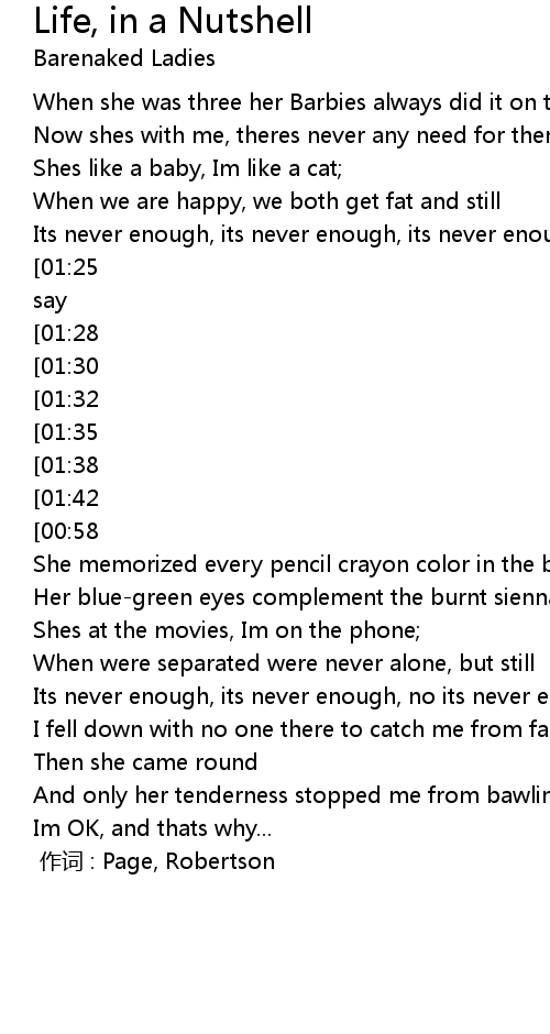 | [02:10][01:35][00:43] | Her life in a nutshell |