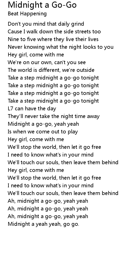 Ah, midnight a go-go, yeah yeah |