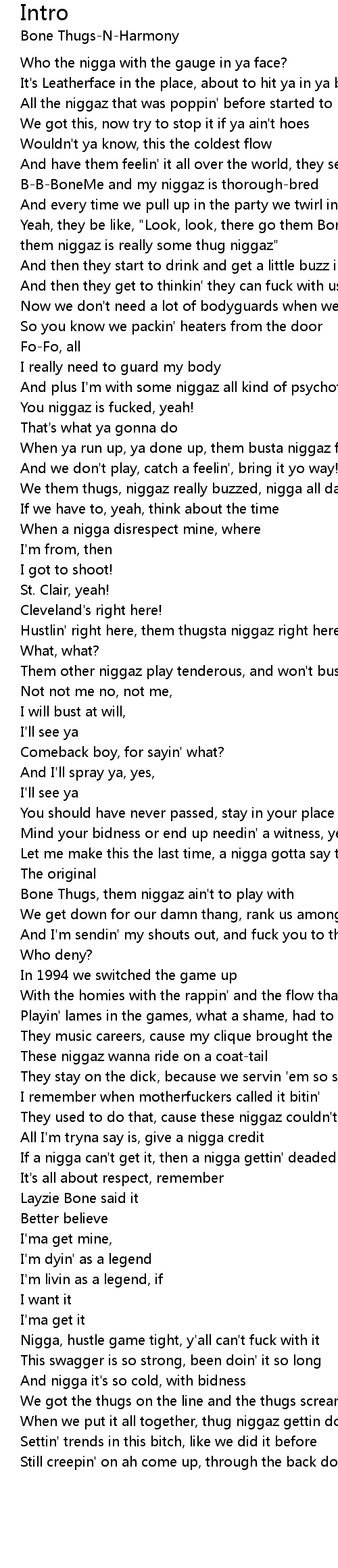 Yeah, they be like, "Look, look, there go them Bone Thug niggaz""I wonder if them niggaz is really some thug niggaz"