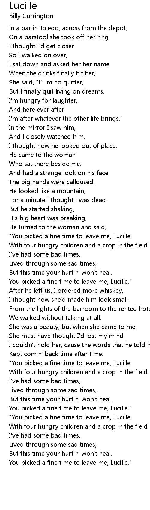 | [02:44.80] | "You picked a fine time to leave me, Lucille |