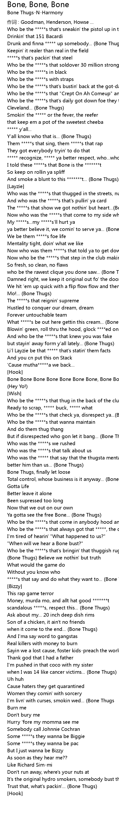| ***** recognize, ***** ya better respect, who...who...who... (Bone Thugs) | |