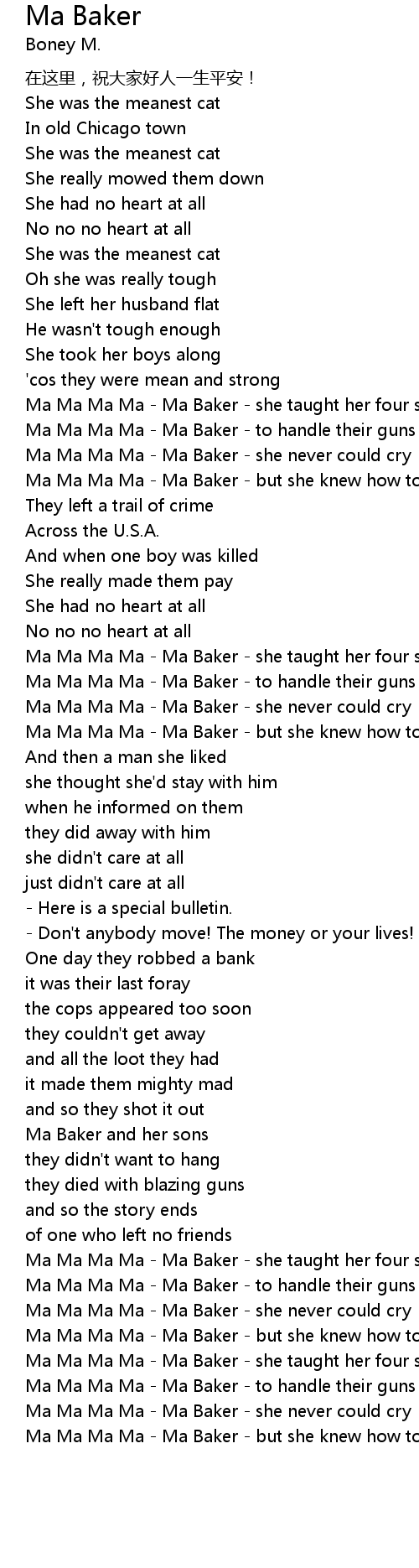 | [03:05.00] | Ma Ma Ma Ma - Ma Baker - she never could cry |