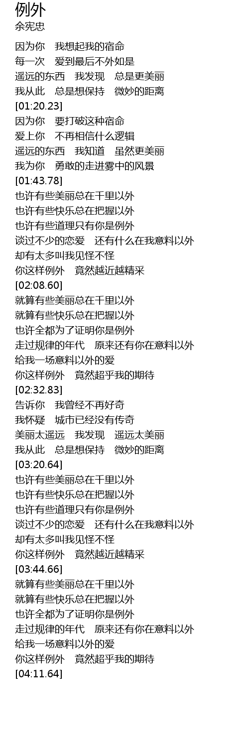 | [03:51.10] | 也许全都为了证明你是例外 |