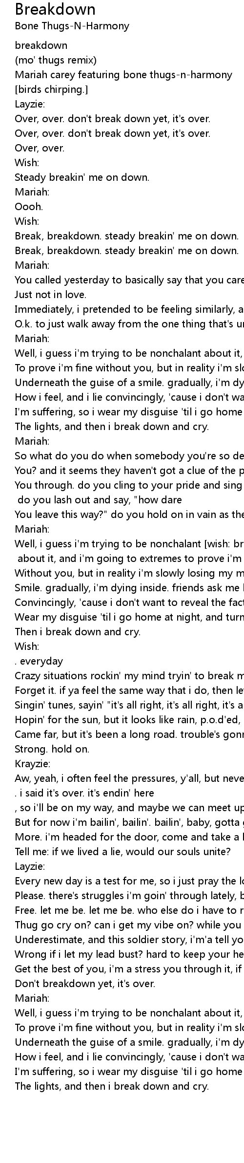 Break, breakdown. steady breakin' me on down. |