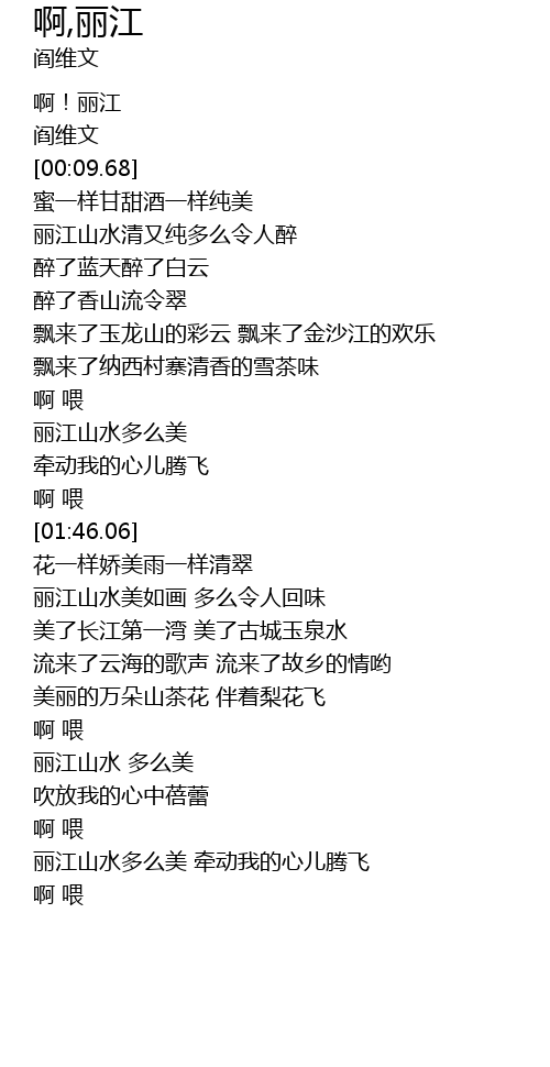 | [00:04.10] | 啊!丽江 |