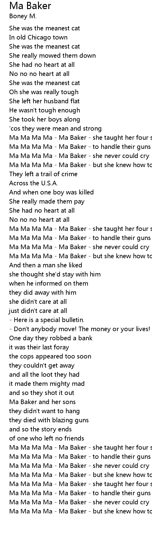 | [03:05.000] | Ma Ma Ma Ma - Ma Baker - she never could cry |