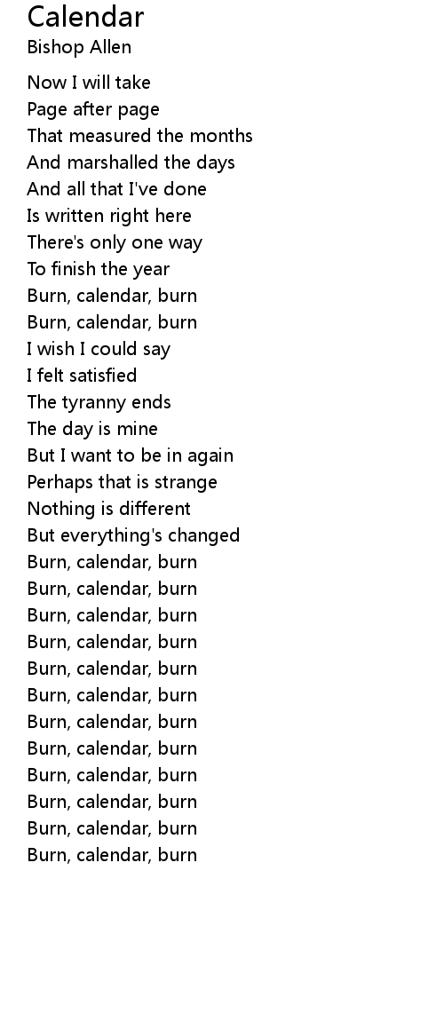 | Burn, calendar, burn |