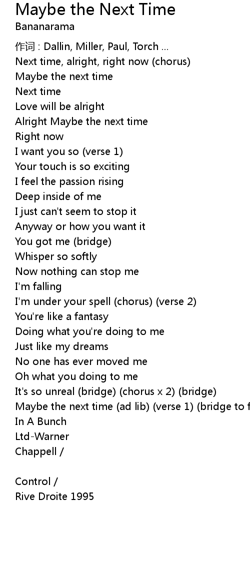 | Maybe the next time ad lib verse 1 bridge to fade publishing : | |