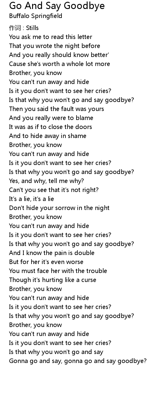 | Is that why you won't go and say goodbye? | |