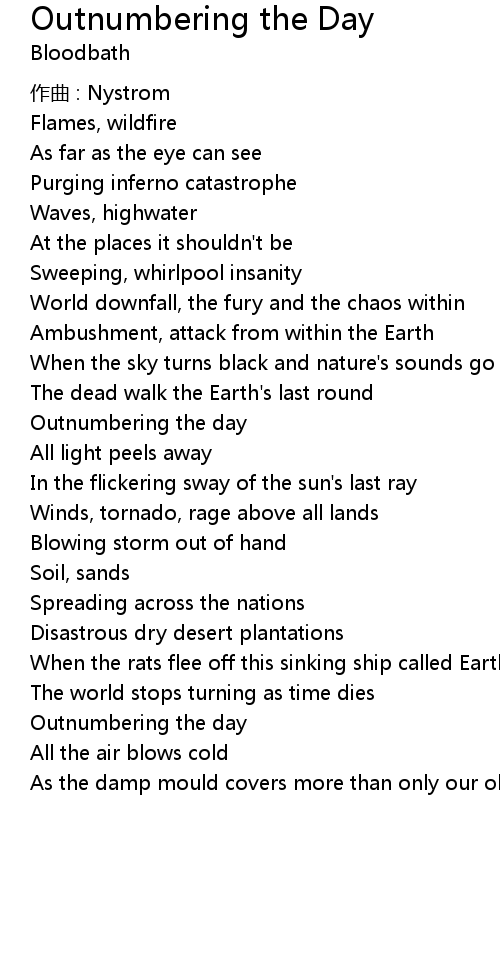 | 歌曲 | Outnumbering the Day |