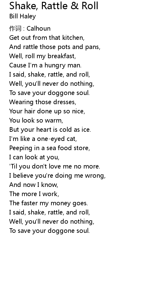 | I said, shake, rattle, and roll, | |