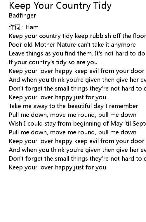 | 歌曲 | Keep Your Country Tidy |