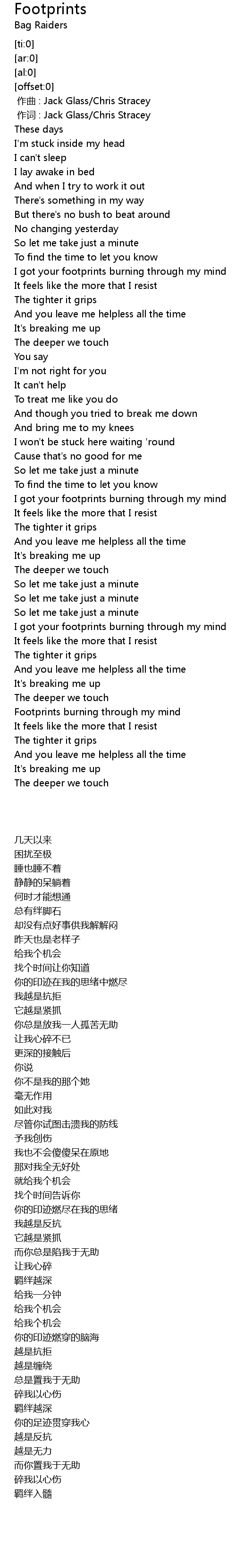 | [00:01.000] | 作词 : Jack Glass/Chris Stracey |