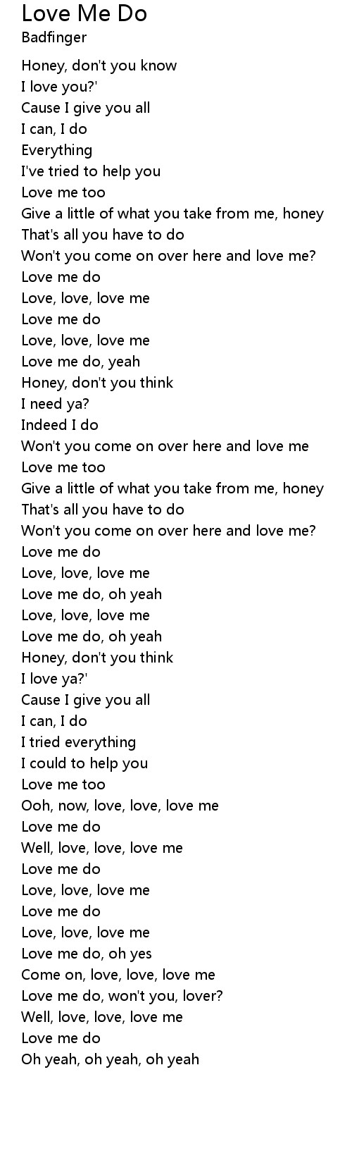 | Love me do, oh yes | |