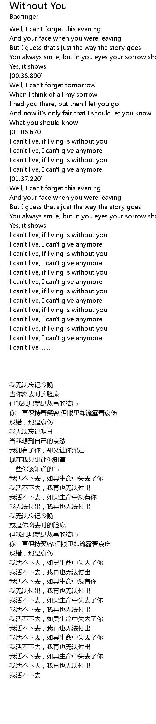 I can't live, if living is without you |