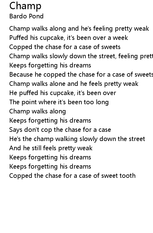 Champ walks along and he's feeling pretty weak |