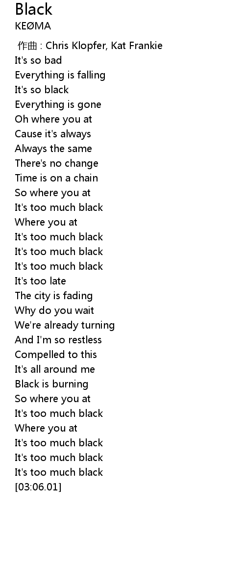 | [01:14.90] | It's too much black |