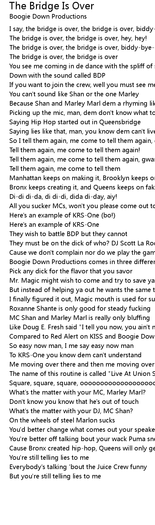 The bridge is over, the bridge is over, biddy-bye-bye! |