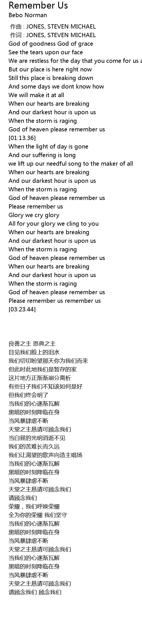 | [01:52.30] | 天堂之主恳请可顾念我们 |