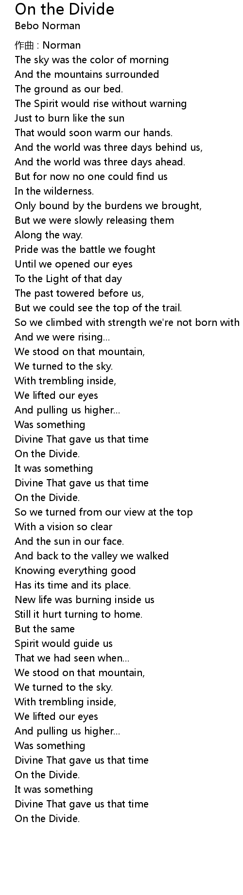 | 歌曲 | On the Divide |