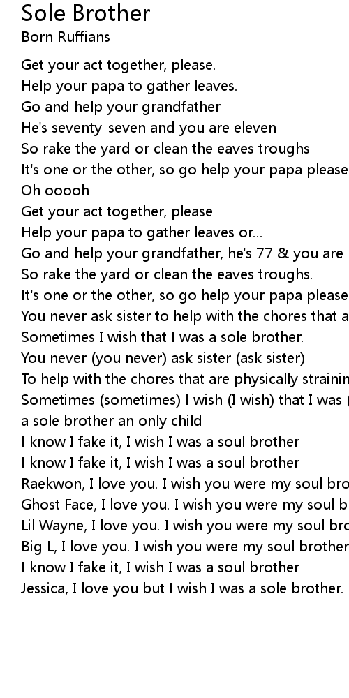 Sometimes I wish that I was a sole brother. |
