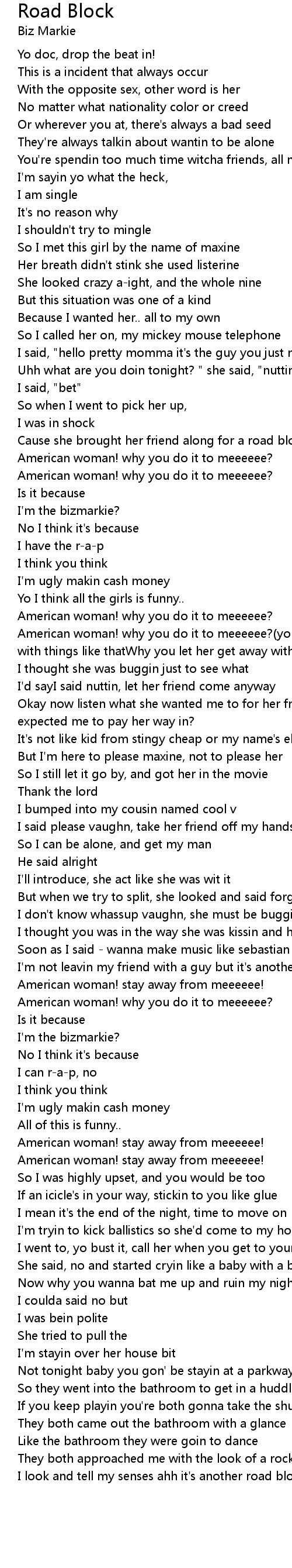 I'm not leavin my friend with a guy but it's another road block[biz sings] |
