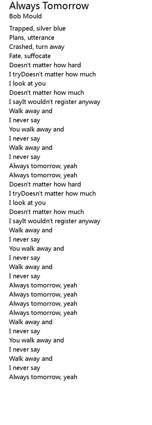 Always tomorrow, yeah |