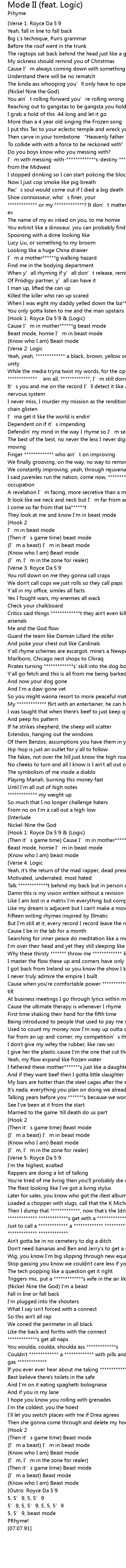 | [01:29.20][Hook 1: Royce Da 5'9 & (Logic)] | |