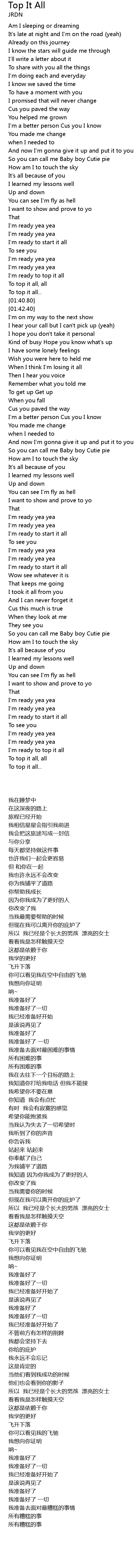 I'm ready to top it all |