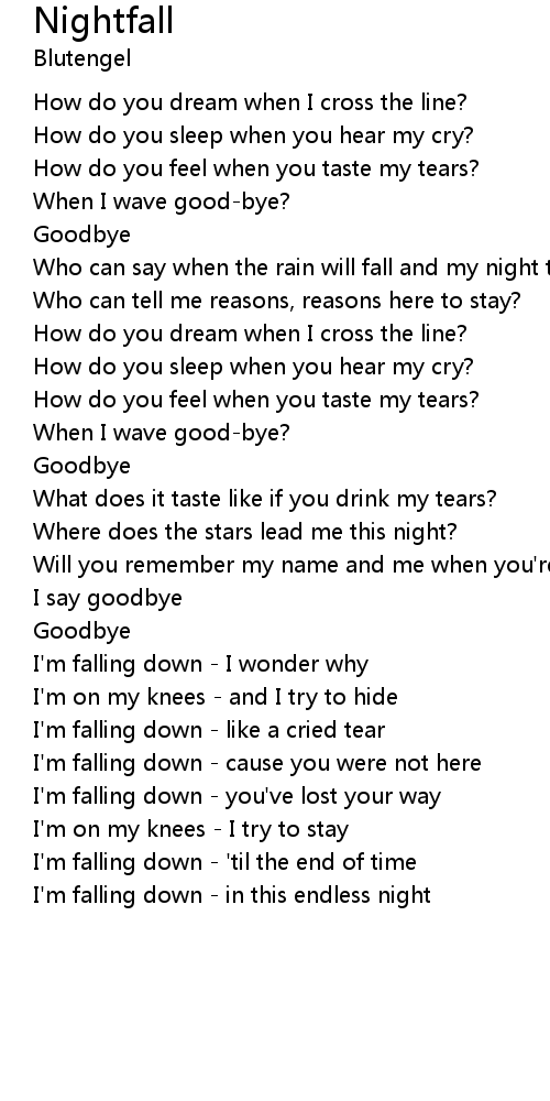 I'm falling down - like a cried tear |
