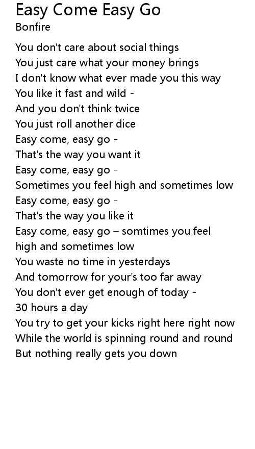 | Easy come, easy go somtimes you feel | |