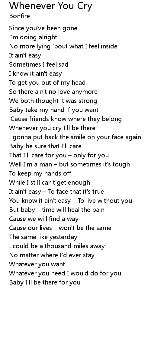 | Whenever you cry I' ll be there | |