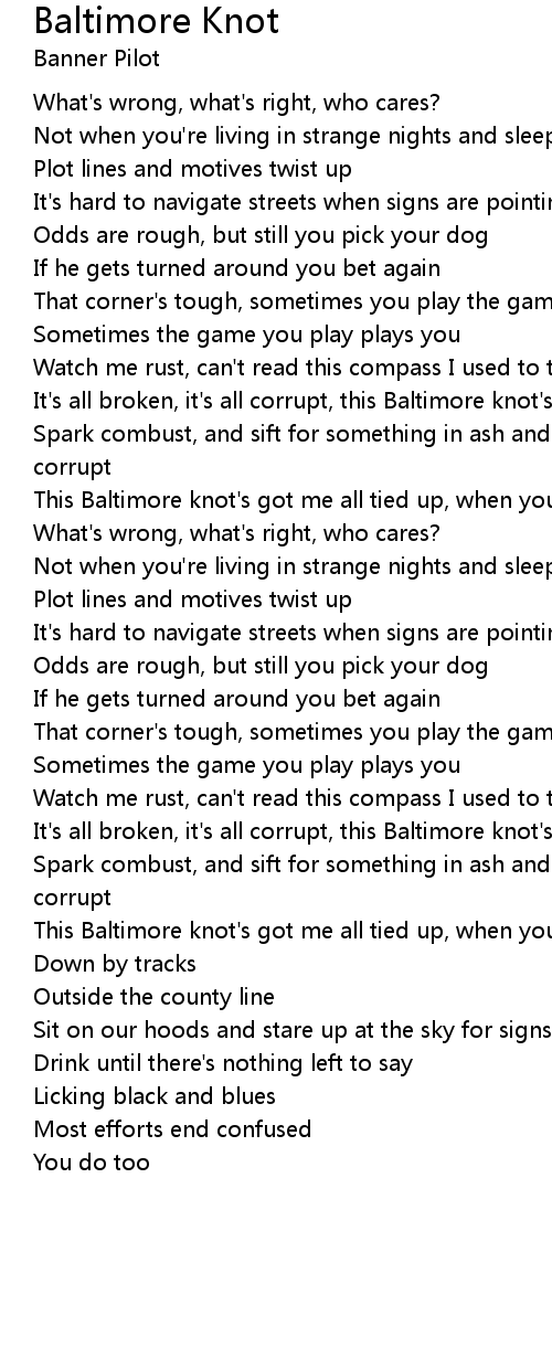 This Baltimore knot's got me all tied up, when you're all tied up you let go