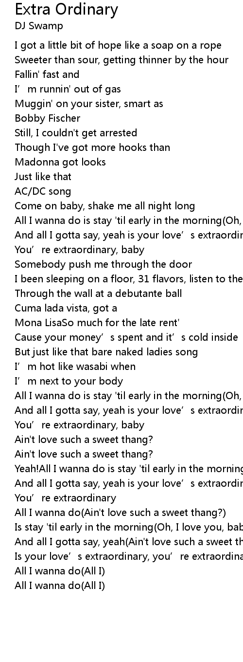 | And all I gotta say, yeah is your love’s extraordinary | |