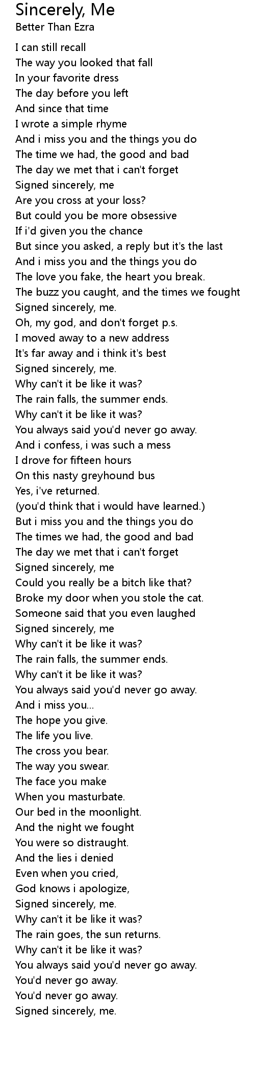 Signed sincerely, me |