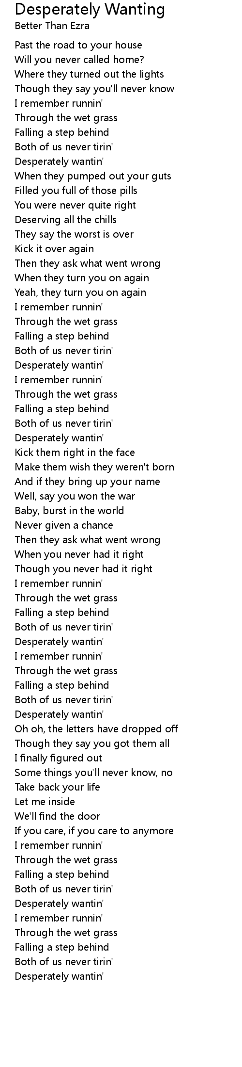 Desperately Wanting 歌词