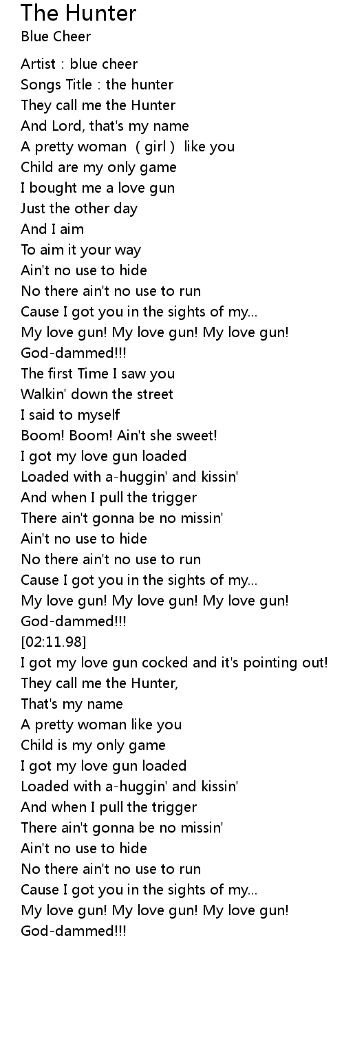 | [02:03.59] | My love gun! My love gun! My love gun! |