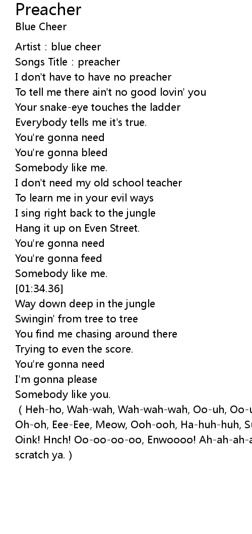 | [00:03.70] | Songs Title: preacher |