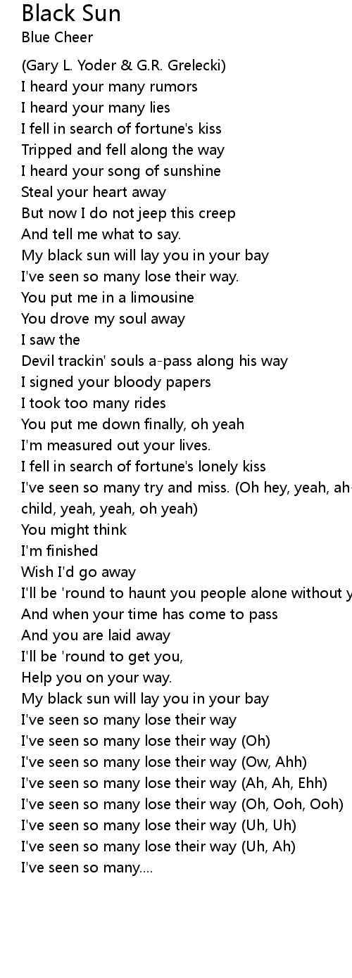My black sun will lay you in your bay |