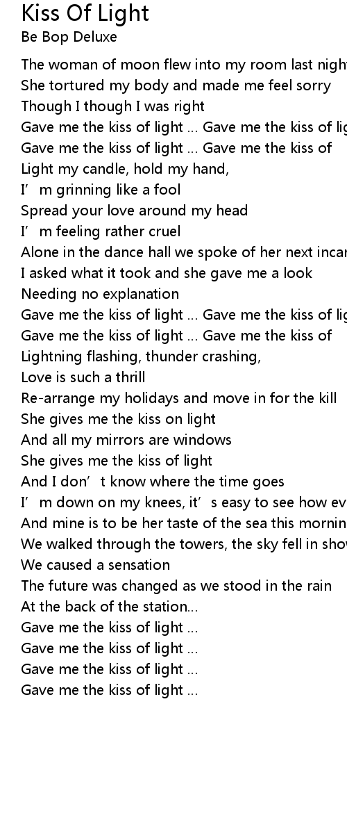 | She gives me the kiss of light | |
