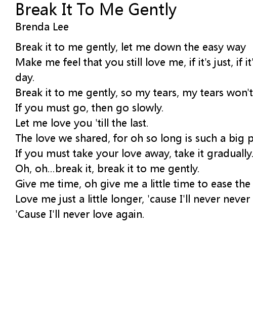 Break it to me gently, so my tears, my tears won't fall too fast. |