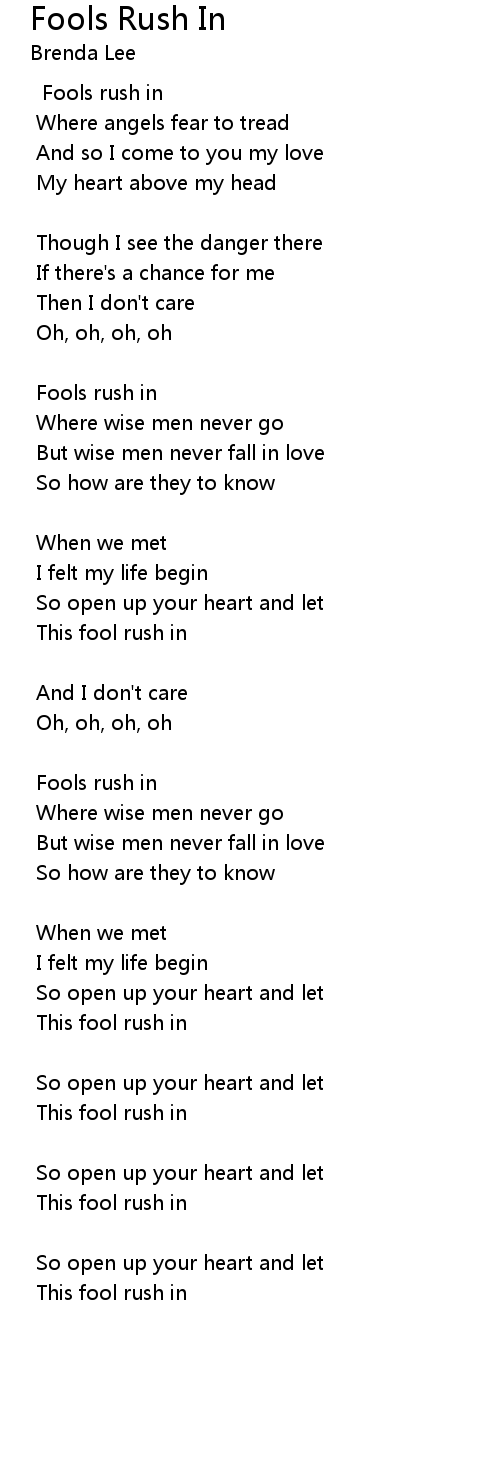 This fool rush in |