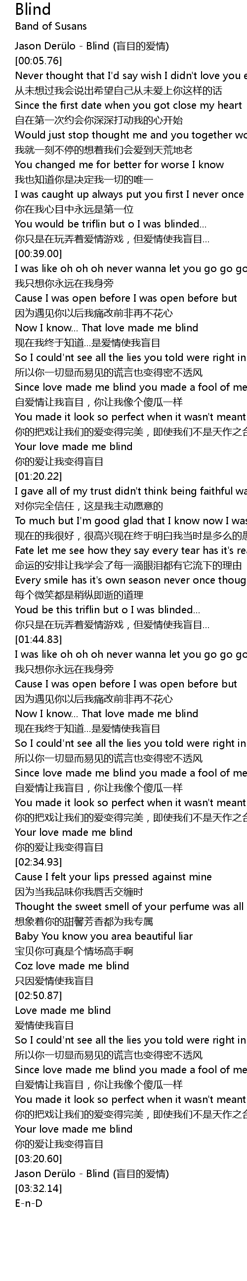 | [00:02.61] | Jason Derü lo Blind máng mù dì ài qíng |