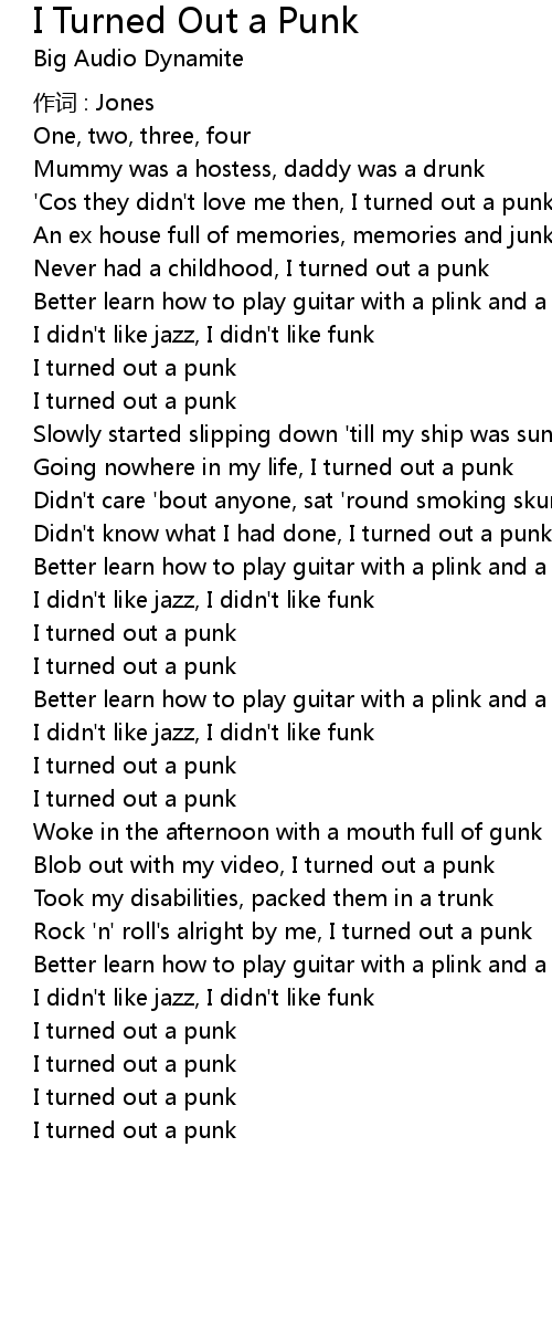 | Rock ' n' roll' s alright by me, I turned out a punk | |