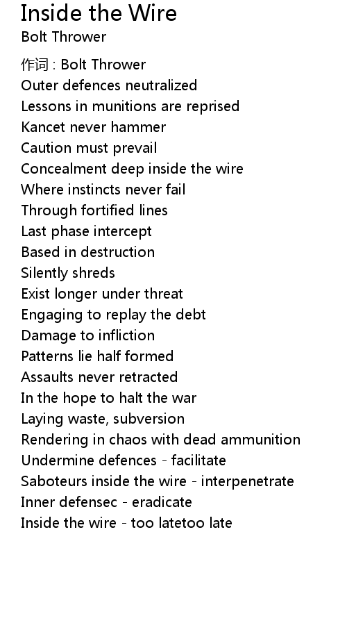 | 歌曲 | Inside the Wire |