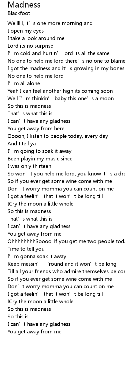 | I got the madness and it’s growing in my bones | |